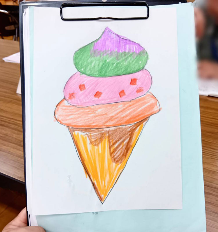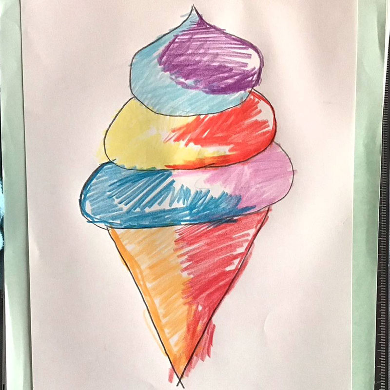 『うんこで美術』ワークです、うんこから色彩豊かなソフトクリームにしていく、子どもたちが楽しみながら色彩感覚と表現力を育む、私の大義の核心です。